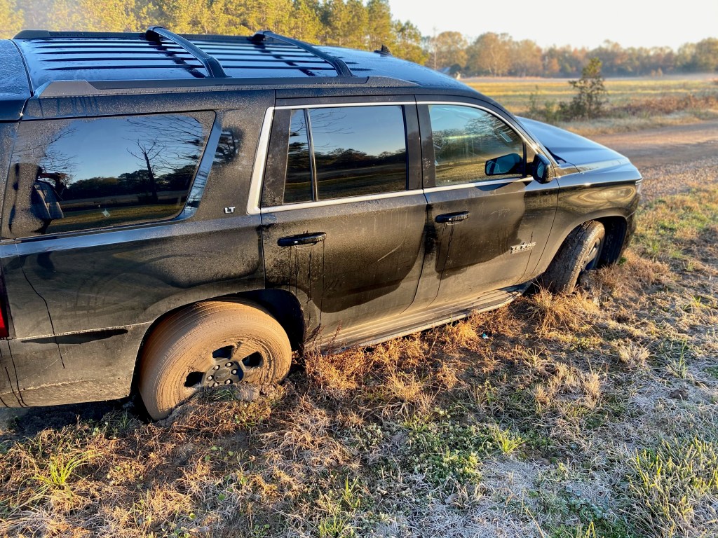 When we arrived home, he was still stuck in the ditch and was blocking the majority of our driveway. My neighbors truck was not strong enough to pull him out. I gathered the kids out of the car and had them walk around the truck to get in the house. As I walked behind his vehicle, I realized that it was a brand new, fresh off the lot, dually. I thought to myself, I can’t believe, with all that power, he couldn’t get out by himself. Shortly after the tow truck was there to pull him out. My yard was destroyed, but other than that, all was well.