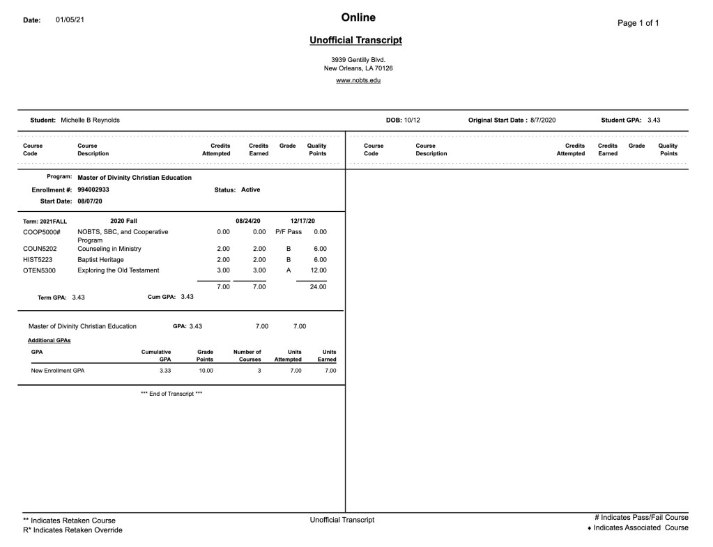 This past semester was my first, and I have seen God move in mighty ways on my behalf. When deciding to go back to school, I prayed and told God that I would only take the number of classes that he provided the additional provision. Why? When I was getting my bachelor’s, my husband and I paid out of pocket with no assistance, and that was hard. I couldn’t imagine putting that burden on us again in less than a year. Yet, God provided. Second, during this semester, I had so much going on, being a wife, mom, teacher, and opening the ministry, among other things. However, every moment I was going to miss a deadline, God extended it. Every moment I felt I wasn’t prepared for an assignment, God helped me. He blew my mind with every path he cleared for me. It is only by his grace that I finished the semester with 2 A’s (one was not for a credit but a required course) and 2 B’s!!!